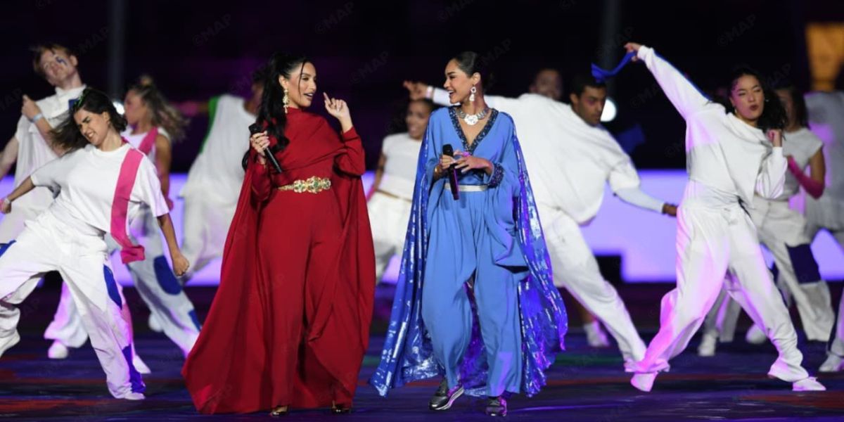 وخطفت الفنانتان الأنظار بأدائهما الأغنية على أنغام تجمع بين الحداثة و الإيقاعات المغربية الأصيلة، وكذا بإطلالتهما الأنيقة بالقفطان المغربي التقليدي، في لوحة فنية راقية جسدت روح الترحيب والاحتفاء بالمشاركات من مختلف دول العالم، لتُعلن المملكة انطلاقة بطولة استثنائية بطابع مغربي خالص.