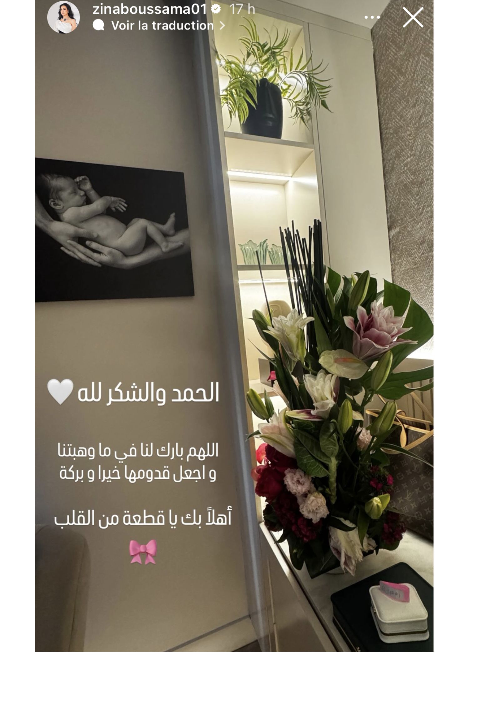 وحرصت زينب اسامة على تقاسم فرحتها مع متابعيها، مدونة “الحمد والشكر لله.. اللهم بارك لنا في ما وهبتنا واجعل قدومها خيرا وبركة.. أهلا بك يا قطعة من القلب”.