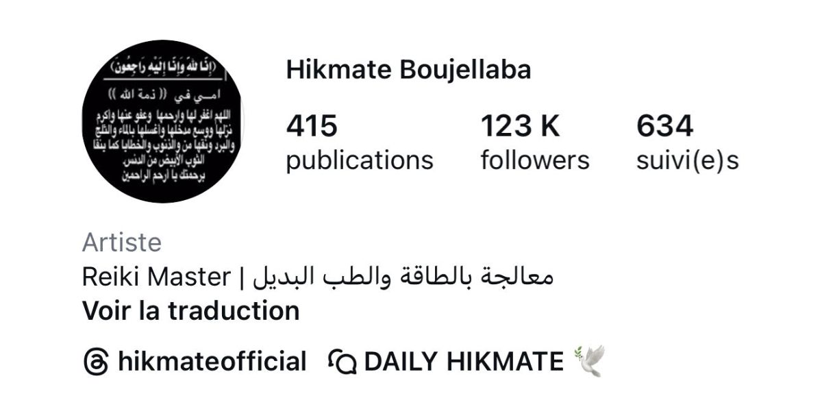 يذكر أن الفنانة المغربية حكمت قد تخلت عن الفن وأصبحت معالجة “ريكي”، وهو نوع من أنواع العلاج بالطاقة والطب البديل.