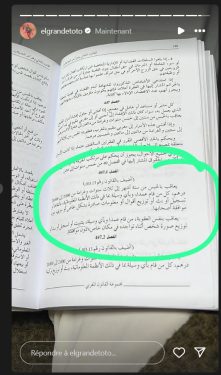 وفضل “طوطو” الرد بطريقة غير مباشرة، من خلال نشر صورة لمقتطف من القانون الجنائي المغربي على خاصية “الستوري” بحسابه الرسمي على “إنستغرام”، وتضمنت الصورة فصولا قانونية تجرم نشر أو توزيع صور أو تسجيلات شخصية دون موافقة أصحابها.