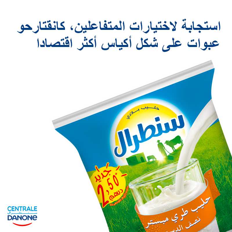 تجدر الاشارة أن المدير العام لشركة سنطرال دانون، إيمانويل فابيير، أعلن خفض ثمن نصف لتر حليب سنطرال من 3 دراهم ونصف إلى ثلاث دراهم وعشرين سنتيم، بالإضافة إلى إنتاج قنينة جديدة من الحليب نصف ذهني (470 مللتر) بثمن درهمين ونصف.