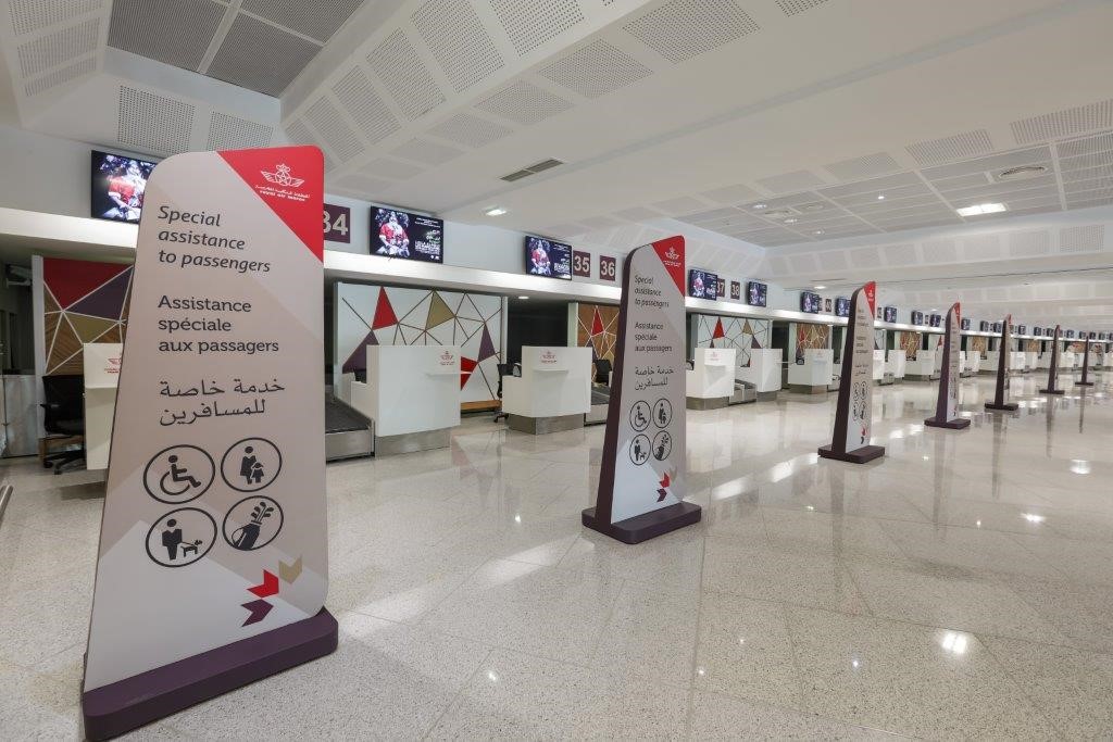 وتتوفر منطقة العبور على نقاط جديدة لمساعدة زبناء شركة الخطوط الملكية المغربية في حركة الربط، حيث تزود الزبناء بثلاثة أكشاك خدمة مجانية بالإضافة إلى 11 أماكن تسجيل تقليدية للتقليل من التأخيرات الناتجة عن الانتظار، ويشمل أيضا معدات مصممة لراحة الركاب أثناء العبور.