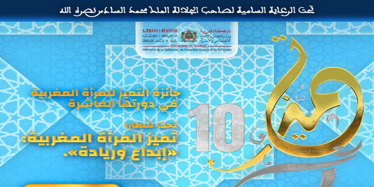 تستعد وزارة التضامن والإدماج الاجتماعي والأسرة، الاثنين المقبل لتنظيم الحفل الرسمي لاختتام وتسليم جائزة “تميز للمرأة المغربية” في دورتها العاشرة، المنظمة هذه السنة تحت شعار: “تميز المرأة المغربية… إبداع وريادة”، وذلك بنادي بنك المغرب بمدينة العرفان بالرباط.