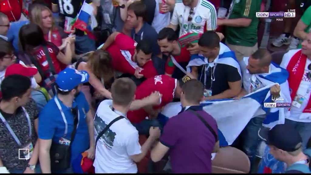 الخلاف نشب بسبب العلم الإسرائيلي الذي رفعه أحد أفراد الجمهور البرتغالي، وهو الشيء الذي رفضه مشجعون مغاربة.