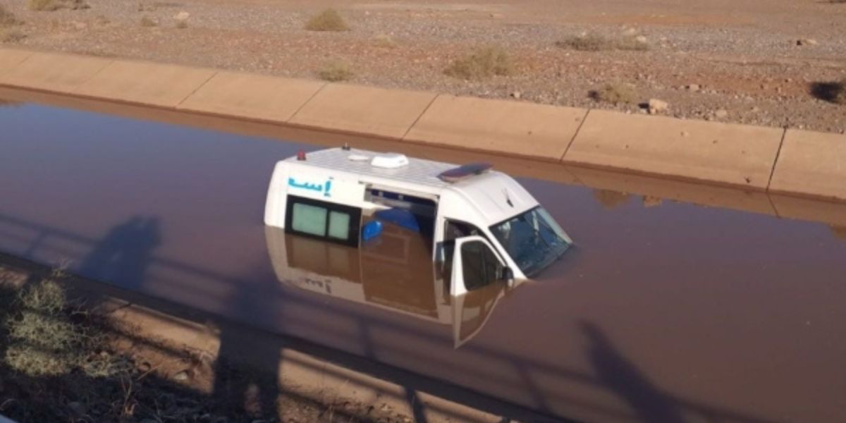 سقوط سيارة إسعاف في قناة مائية نواحي مراكش