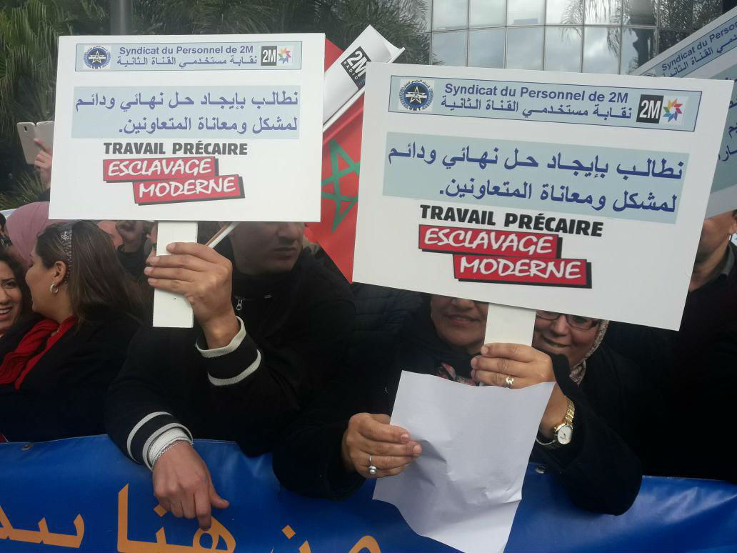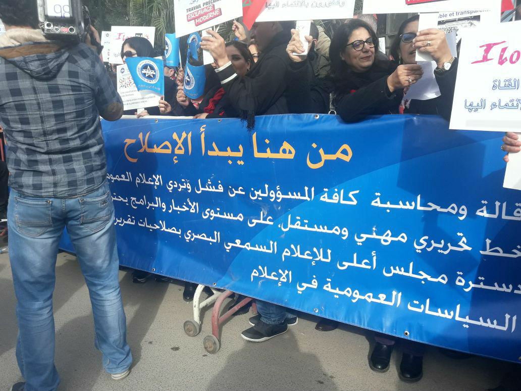 ورفع أطر القناة الثانية مجموعة من اللافتات الحاملة لجملة من المطالب، أهمها إيجاد حل نهائي ودائم لمشكل ومعاناة المتعاونين، ومحاسبة المسؤولين عن فشل وتردي الإعلام العمومي حسب تعبيرهم، وكذا إقرار خط تحريري مستقل على مستوى الأخبار والبرامج.