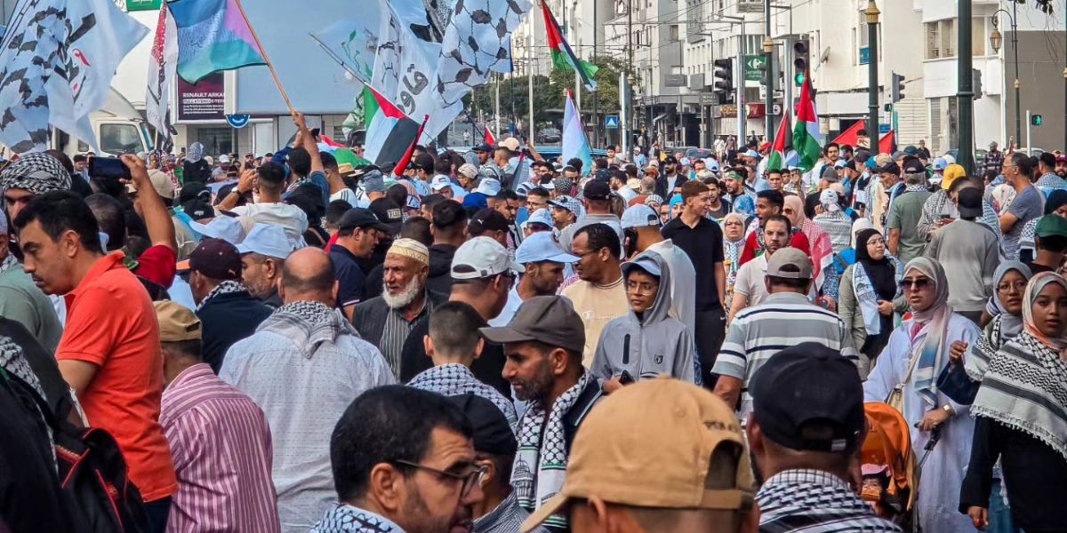واحتشد المئات من المغاربة في العاصمة الرباط  للمشاركة في المسيرة التضامنية مع فلسطين، وللتنديد بما يرتكبه الاحتلال من جرائم بقطاع غزة، وسياسة تجويع شعبه.