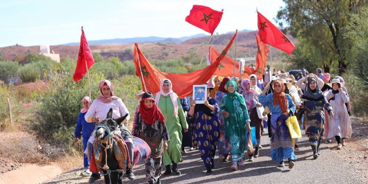 نساء يخضن مسيرة على الأقدام نحو عمالة خنيفرة احتجاجًا على تدهور الطريق