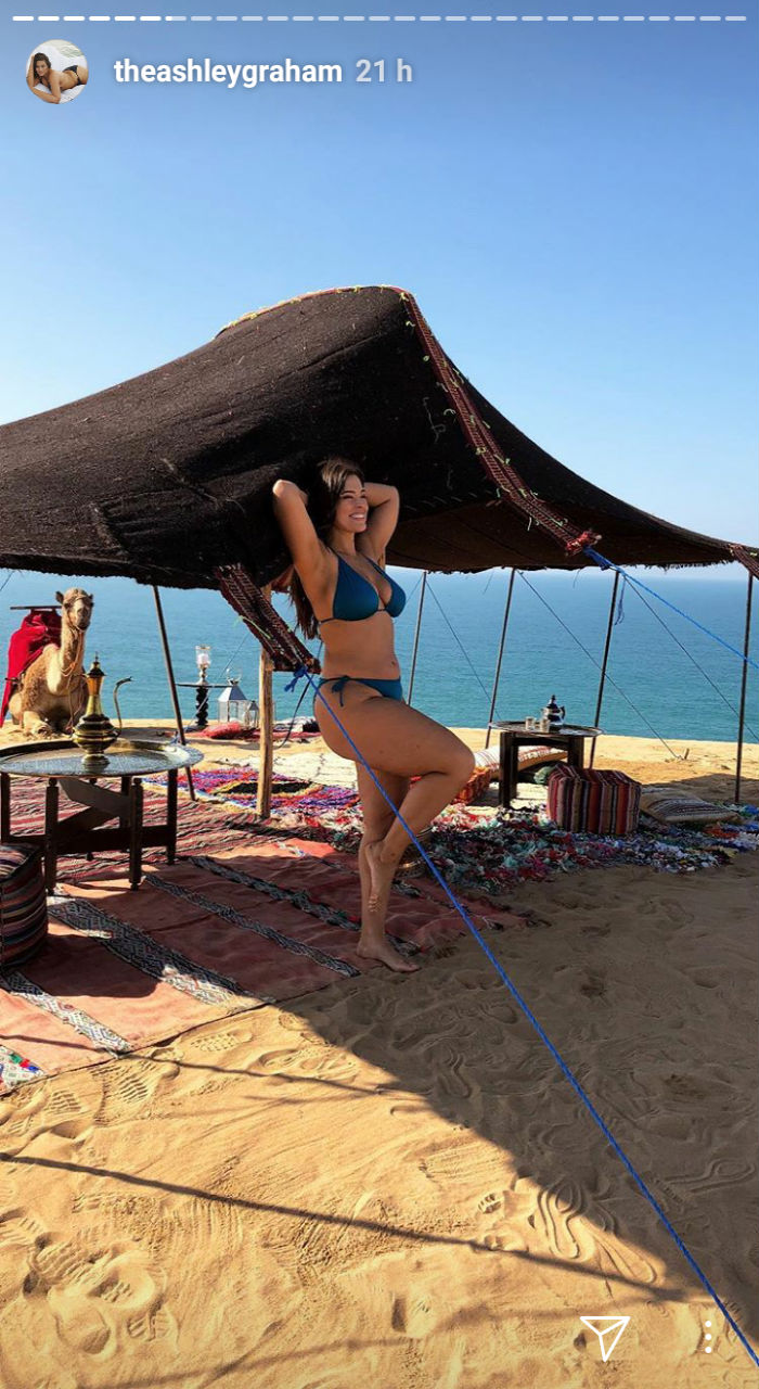 ونشرت غراهام على حسابها بموقع التواصل الاجتماعي أنستغرام، مجموعة من الصور التي التقطتها خلال زيارتها لمدينة أكادير، إذ اغتنمت أجواء الصحراء الشاسعة ومناخها المعتدل للقيام بجلسات تصويرية بملابس السباحة.