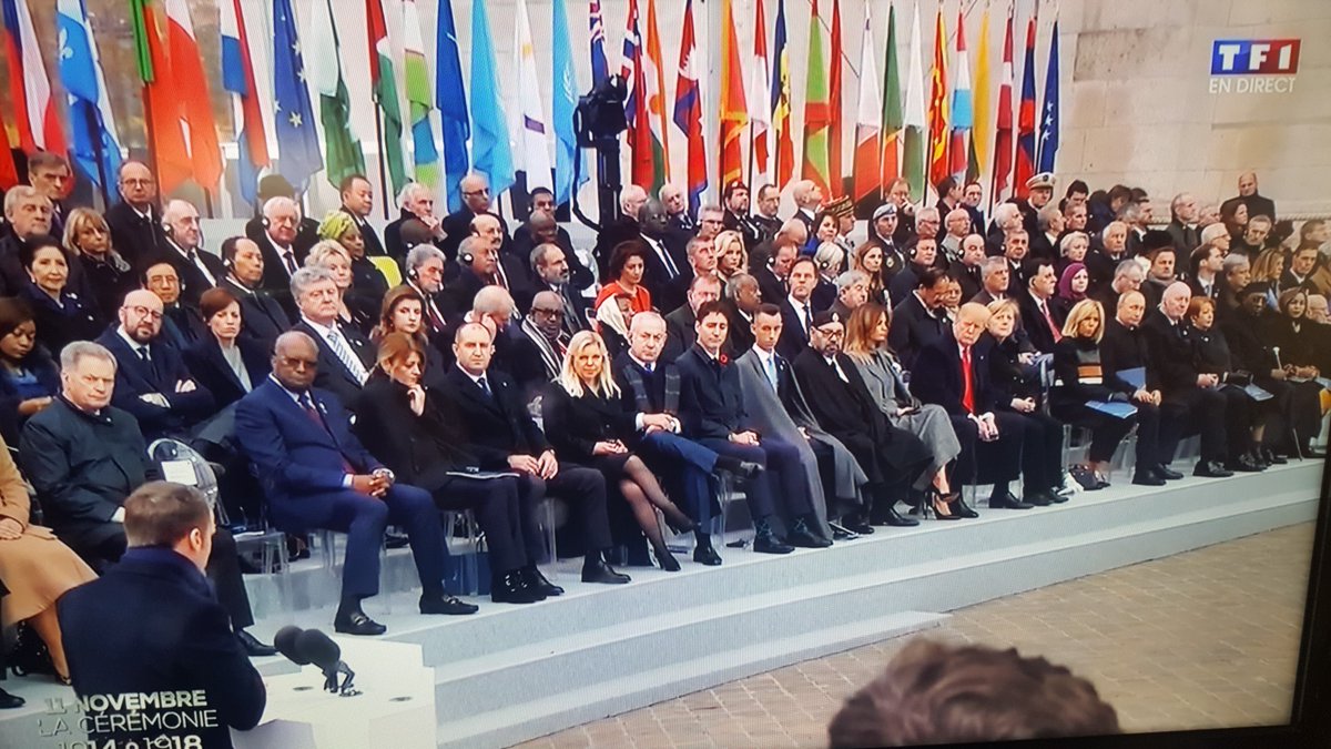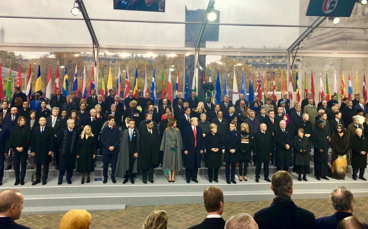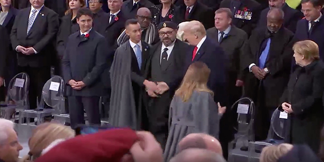 وظهر العاهل المغربي بالصف الأول إلى جانب الرئيس الأمريكي دونالد ترامب، والرئيس الفرنسي إيمانوي ماكرون، والرئيس الروسي فلاديمير بوتين، والمستشارة الألمانية أنجيلا ميركل.