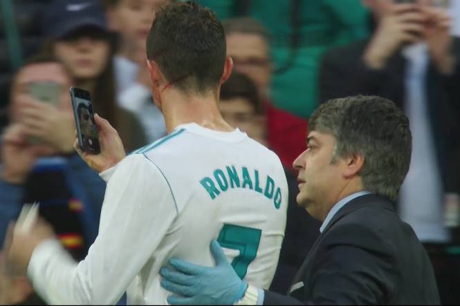 وعلى الفور تدخل الجهاز الطبي لريال مدريد لعلاج رونالدو بعدما نزف الكثير من الدماء على أرضية ملعب البرنابيو.