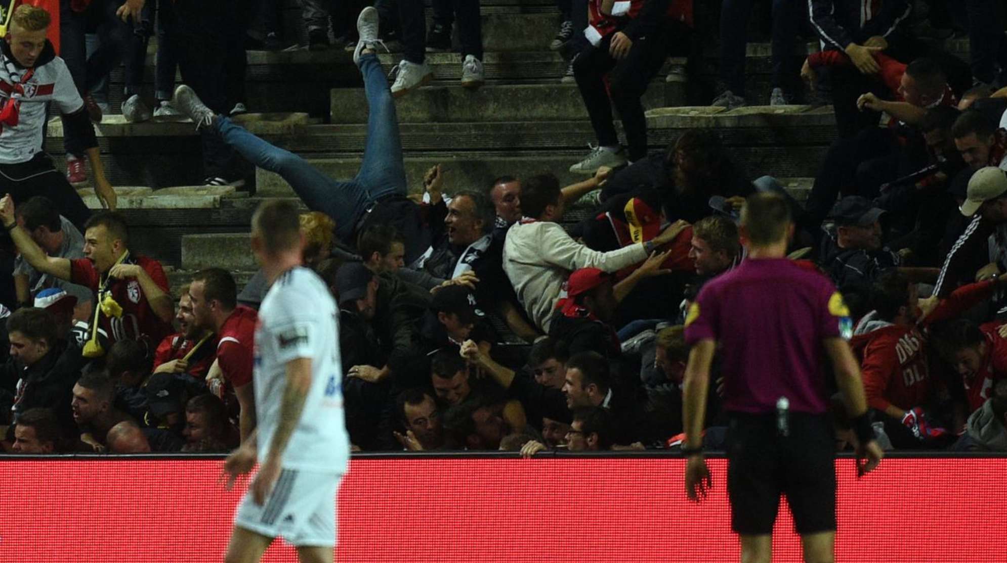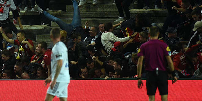 وأظهرت لقطات تلفزيونية العشرات من مشجّعي “ليل” يسقطون فوق بعضهم بعد انهيار حاجز في استاد لاليكورن بعد ثوانٍ من هدف سجّله “ليل” في الدقيقة 15 حسب “سكاي نيوز”.