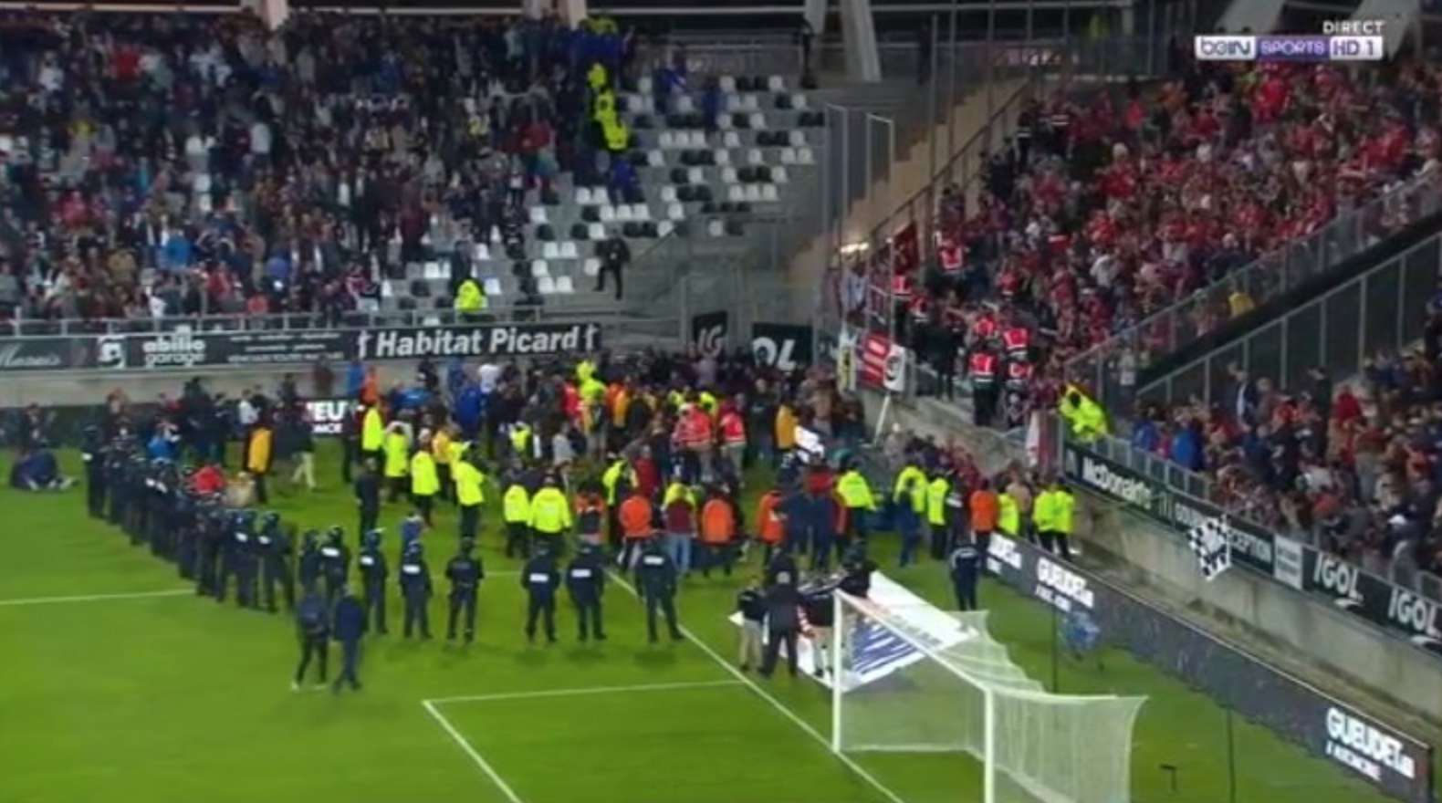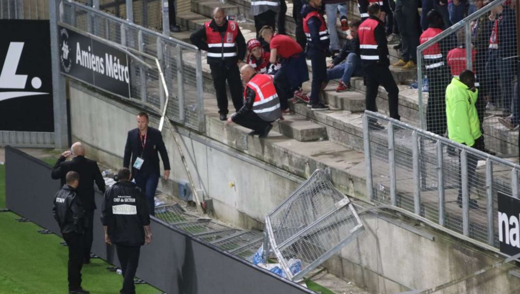 أصيب 29 شخصا على الأقل، بينهم خمسة في حالة خطيرة، عندما انهارت حواجز الملعب في مباراة بدوري الدرجة الأولى الفرنسي لكرة القدم، بين إميان وليل، مما أدى لإلغاء المباراة.