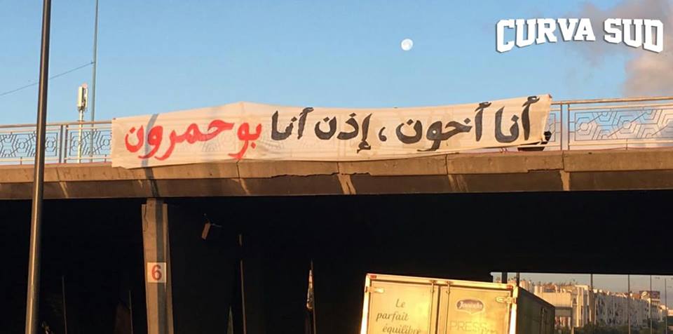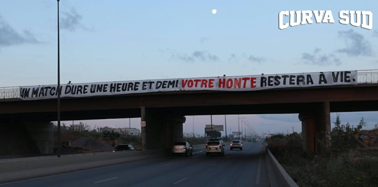 وأوردة التراس” إيغلز” المساندة للرجاء عبر منشور لها في الصفحة الرسمية بموقع التواصل الإجتماعي “فايسبوك” صور مرفوقة بالتدوينة التالية: “رسائل واضحة المعالم، لا تحتاج شرحاً، و إن تعذّر على المتلقي فهمها فقد تُرِكت له في بعض قناطر الطريق المؤدي للمكان الخطأ للديربي، بإمكانكم أخذها لتروي لكم البعض من مبادئ و قيم الحركية، بإمكانكم الإحتفاظ بها لتكون ذكرى لإحدى خياناتكم العديدة”.