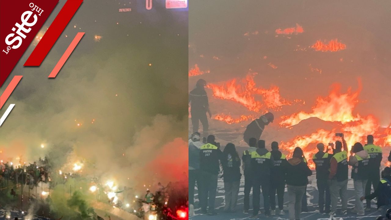 ورصدت كاميرا “سيت أنفو” احتفالية الجماهير الخضراء، التي تسببت في اندلاع حريق بالقرب من أرضية الميدان، قبل أن يتدخل رجال الإطفاء المتواجدين بالملعب سريعا لإخماده.