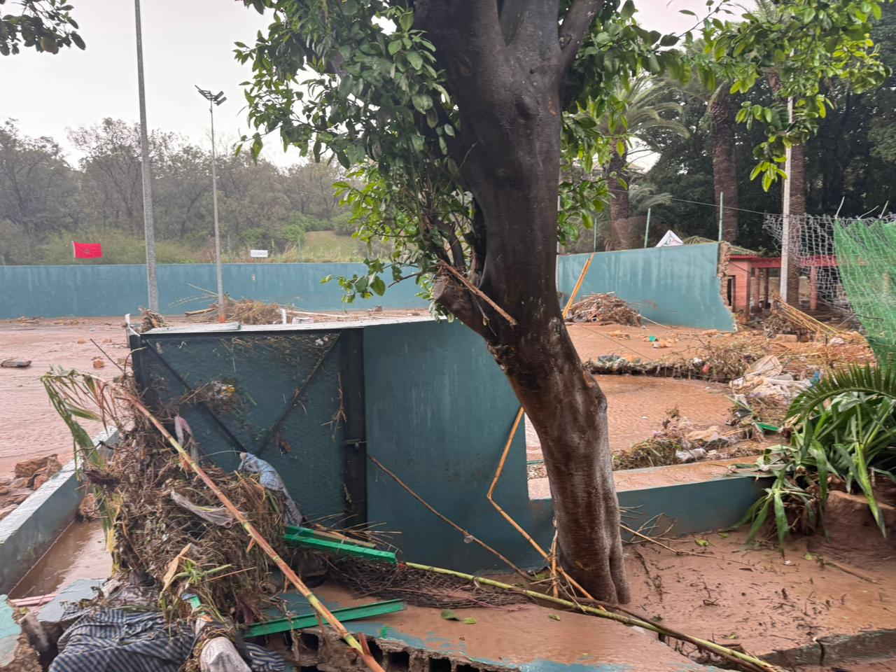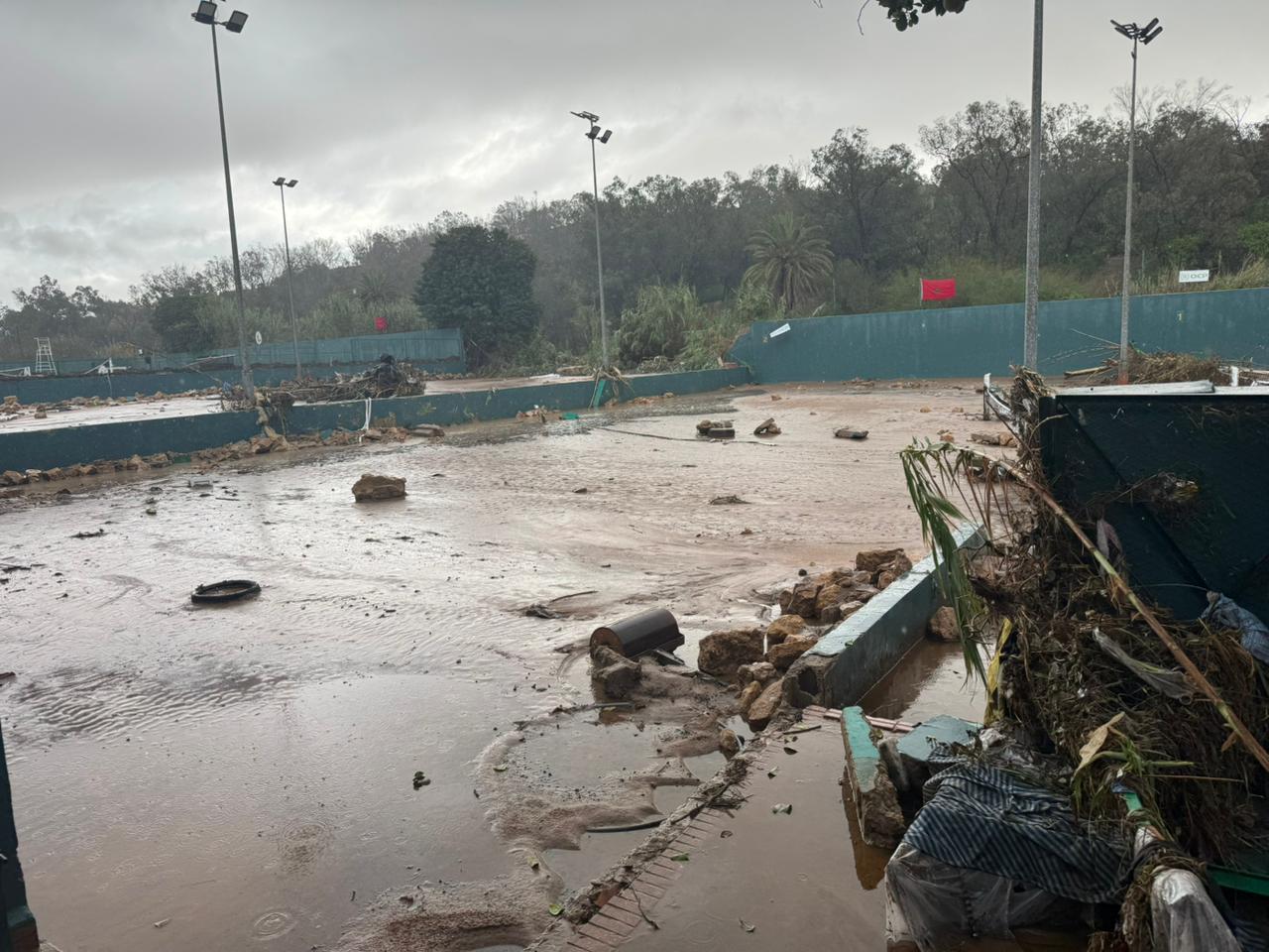 وفي غضون دقائق، غمرت المياه كل شيء. فقدت الأودية، وخاصة واد الشعبة، مسارها الطبيعي بسبب الانسدادات في الوادي، ففاضت بعنف شديد على مرافق النادي.