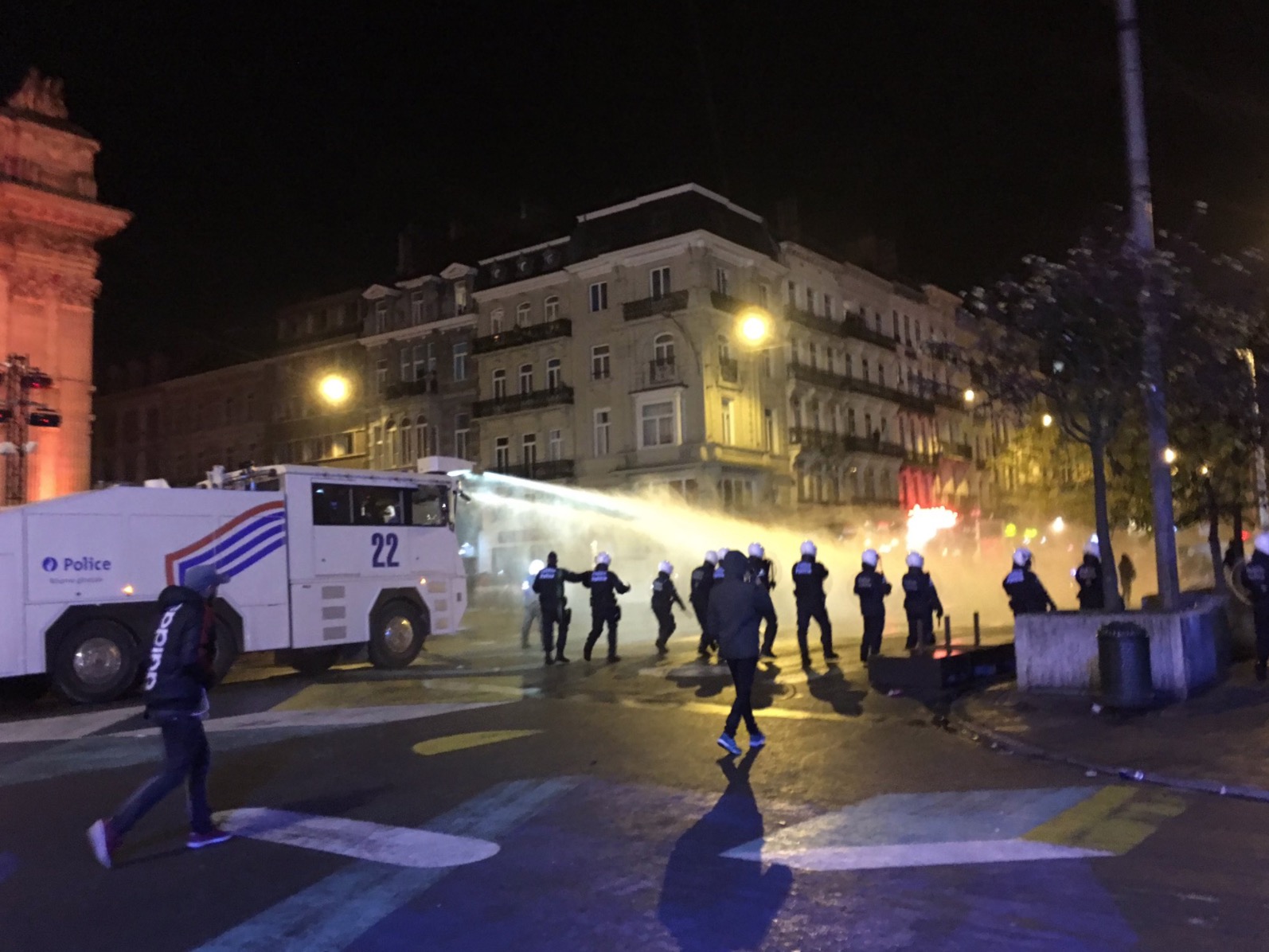 وأظهرت مشاهد فيديو انتشرت على وسائل التواصل الاجتماعي محاولة شرطة مكافحة الشغب إغلاق الطرقات بوجه الجماهير، فيما كان مشجعون آخرون يحتفلون أمام مبنى البورصة في بروكسل حيث تقام الاحتفالات الرياضية في غالب الأحيان.